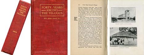 Rev John Craig 'When John Craig was six years old, Dr Samuel S Day, founder of the American Baptist Telugu Mission, was a visitor at the Craig home [in Port Hope] and took pains to cure John of a lisp, thus preparing another tongue to preach the everlasting gospel to the Telugus. Nine years later John was converted and baptized just as Mr and Mrs Timpany were leaving for India in October, 1867. The call to the foreign field came to him suddenly while a student in Rochester University in the spring of 1874, when a voice spoke distinctly to his heart saying, 'You must go to India or Burma.' That was when Mr and Mrs McLaurin were on their way from Ongole to Cocanada to begin our independent work. Three years later Mr Craig was set apart to the work at a service in Jarvis St Church, in which Mr Timpany participated. During the thirty-one years that have since elapsed his connection with our Mission has been unbroken. No other has served it so long as he, nor probably has any other so thorough a knowledge of its history. Not the least service he has rendered is the production of this volume to which he devoted his recent furlough. It tells of God's providential leadings, the Mission's romantic beginnings, its trials and its triumphs, the patient toil and noble heroism of the workers. The country and the people are described, the story of each missionary and each field is sketched, and the various means, methods and departments of work indicated. The chapter on the remarkable Revival of 1906 may well challenge the attention of all Christian people. The work is a reliable thesaurus of the most important and interesting facts covering the home organization as well as the work abroad. The Foreign Mission Board has shown its sense of the book's value by becoming responsible for the expense of publication. It can be made to render invaluable service if placed in Sunday School libraries, and if Young People's Societies and the Women's Circles will lay its treasures under tribute for the enrichment of their meetings. May we not hope that a great number of the friends of Foreign Missions will actively interest themselves in increasing its circulation and thus multiplying its usefulness. May this 'labour of love' prove a source of increasing satisfaction to the heart of our veteran missionary and may the reading of these pages strengthen faith, quicken missionary zeal, win recruits and appreciably contribute toward the accomplishment of the world's evangelization within our day.' Martha M Perry 'Mrs Martha Perry Craig was the first member of our Mission to be called away. She was born at Port Hope, Ontario, Canada on February 13th, 1853. She was converted and baptized there when she was fourteen years of age. Two years later she removed with her parents to Rochester, NY. Mr Craig's attendance at the Theological Seminary led to a renewal of the friendship of their early years. They were married on September 20th, 1877, and sailed from New York on October 24th. They reached India just at the close of the year, and arrived at Cocanada on January 4th, 1878. Mrs Craig found some congenial work in the Sunday School of the English Baptist church, where she taught a class during most of her stay in Cocanada. In a history of the church read at the opening of the new building in January, 1906, it is said that she was dearly loved for her sweet and gentle ways. The coming of her firstborn in the first year of her life in India, and some months of ill health that followed interfered sadly with the study of Telugu, but she persevered and began to get a good hold of the language. The baby girl was a great comfort to the mother, who often longed for her own mother, but in July, 1879, the year old girl was suddenly taken away. In November, 1880, Cocanada was left with its pleasant companionships and a new home set up at lonely Akidu. After a few weeks there Cocanada was revisited, and on February 13th, 1881, another baby girl came. Some weeks of illness were followed by a partial recovery, and it seemed best that Mrs Craig should accompany her husband to Akidu before the canals closed. The journey proved too much for her and she passed away on April 2nd. Mr and Mrs Bowden, whose kindness to Mr and Mrs McLaurin is mentioned in Chapter III, were present at the end. They had travelled from Narsapur by bullock-coach in response to Mr Craig's call. The funeral took place at Narsapur on the 4th. Some years later the cemetery was encroached on by the Godavari River, and it was deemed wise to transfer the remains to Cocanada. This was done in July, 1889.' William Carey 'William Carey was born on Aug 17, 1761, in a village in Northamptonshire, where he spent his childhood in poverty. He first was a shoemaker's apprentice. Although without formal education, Carey was an avid reader and a precocious linguist. He became a Baptist preacher and worked as a schoolmaster and was already on his way to becoming the leader who, in spite of the general reluctance of the Protestant churches of his day, devised new ways to obey the great commission 'to go and evangelize the nations.' In one of the most surprising publications of missionary history, Carey expounded some practical guidelines 'to use means for the conversions of the Heathens.' In a sermon to his colleagues (1791) he first used the words which would become the creed of modern missions: 'Expect great things from God, attempt great things for God.' In 1792 the first modern-style missionary society was founded: The Baptist Missionary Society. It was a model for the hundreds of societies to follow in the 19th century. In 1793 Carey arrived in India, where he was confronted with the antimissionary attitude of the British colonial government. He settled in the Danish colony of Serampore, near Calcutta, where he inspired the teamwork of the 'Serampore Trio' (Carey, William Ward, and Joshua Marshman). This 'commune' attempted to translate the universality of the Christian faith into t