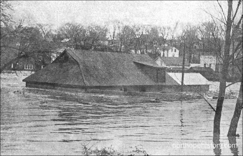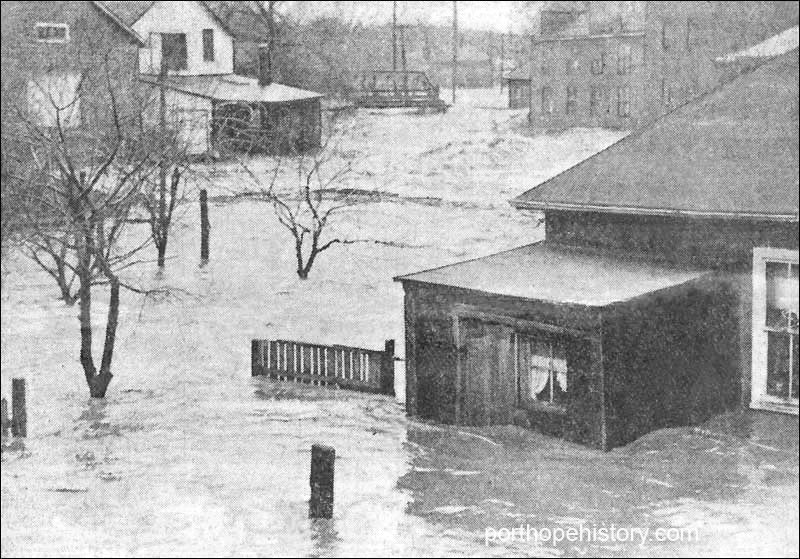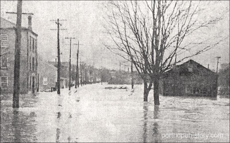 The Port Hope Cafe was flooded, on the south side of Walton Street, as well as New Service Cleaners, Wells' Bakeshop and a Chinese laundry.