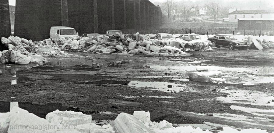 Battered cars near the CPR viaduct on Queen Street